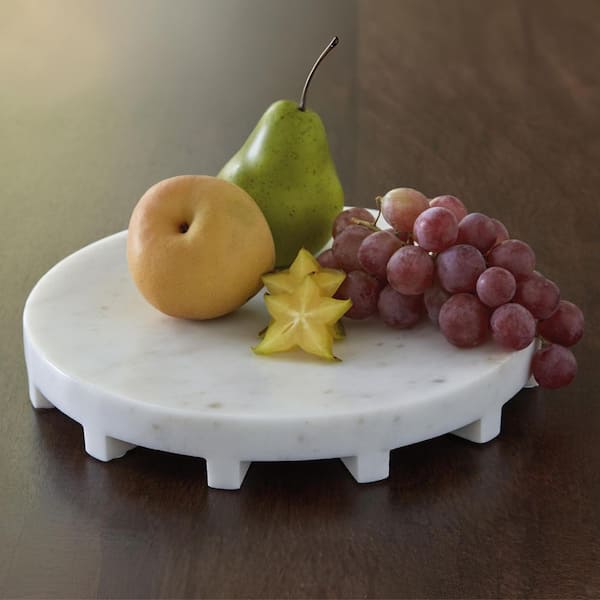 Wainmoore White Round Marble 12 in. Decorative Tray