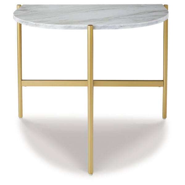 Wynora 26 in. White/Gold Half-Circle Faux Marble End Table with Finished