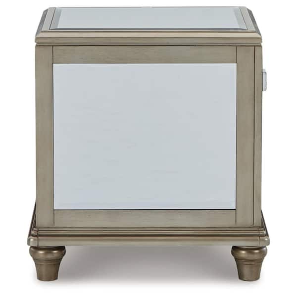 Chevanna 23 in. Metallic Rectangle Glass End Table with Storage and Drawers and Shelves
