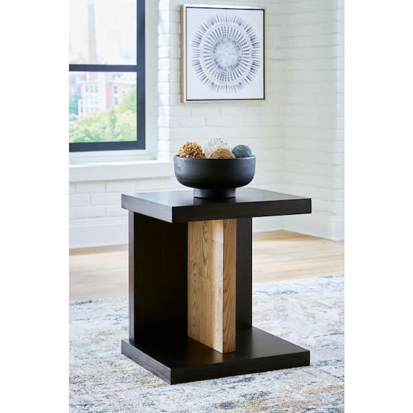 Kocomore 22 in. Brown Rectangle Wood End Table with Storage and Shelves