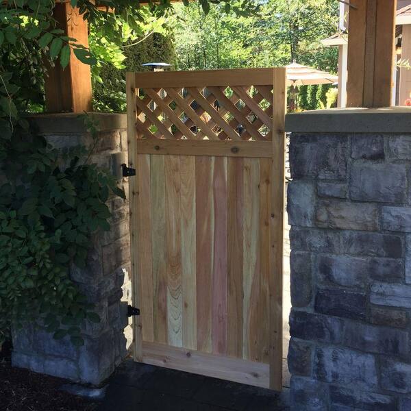 3 ft. x 6 ft. Western Red Cedar Flat Top Diagonal Lattice Fence Gate