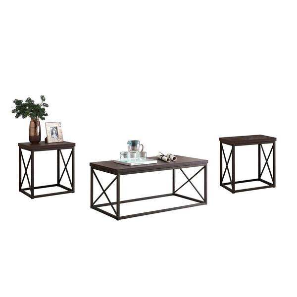 Signature Home 40 in. L Pewter/Brown Rectangle Shape Top Material Wood Coffee Table Sets With 2 Ends Tables
