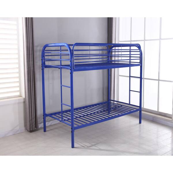 Signature Home Oswald Blue Bed Frame Metal Size Twin Platform Bunk Bed with Stairs, 78 in. W x 40 in. L x 60 in. H