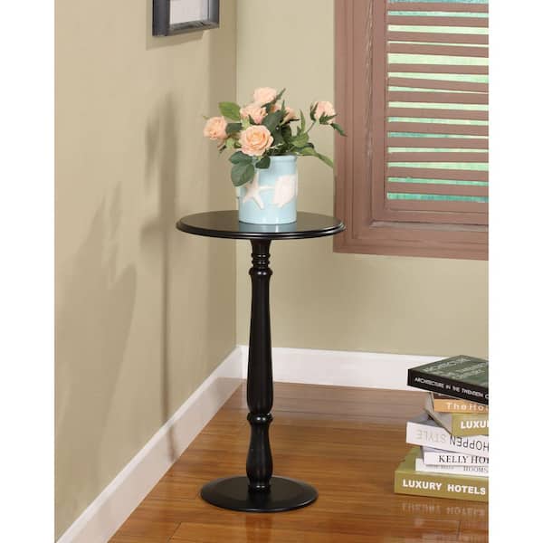 SignatureHome Black Finish Material Wood Plant Stand Side End Table Shape Round Dimensions: 14"W x 14"L x 25"H