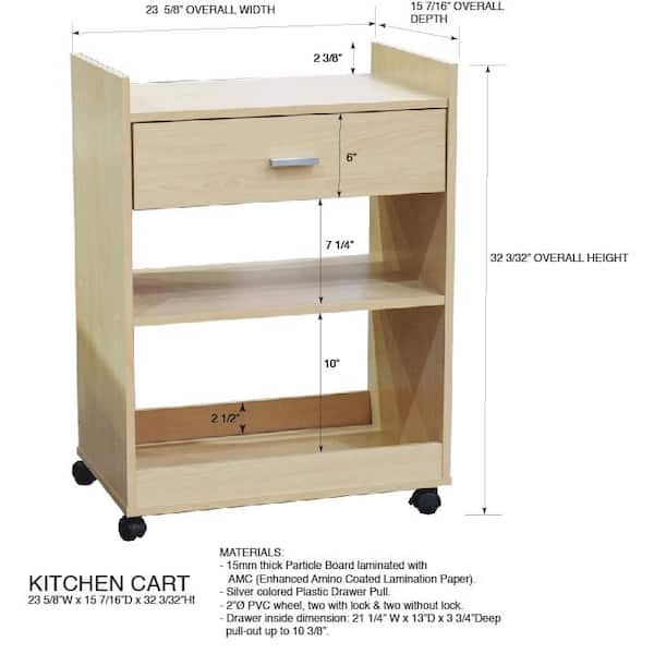 SignatureHome Dellow White Finish Wood Kitchen Cart With 4 Wheels 2 Lockable; 2 Unlockable. (24Lx15Wx32H)