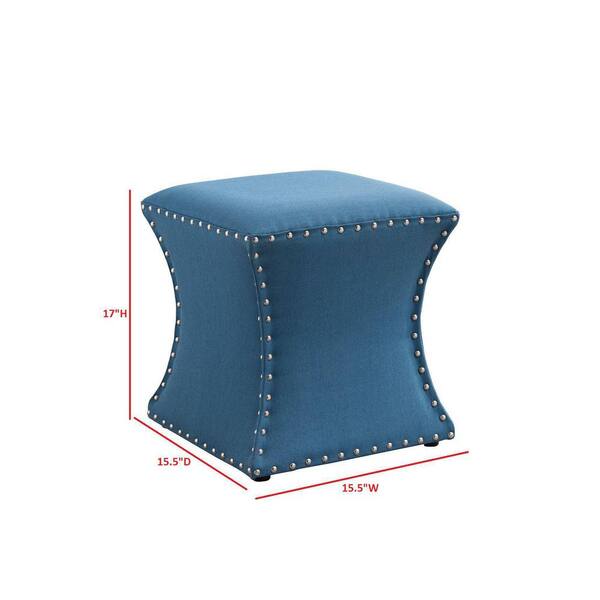 SignatureHome Emeril Nailhead Trim Microfiber Upholstered Ottoman Stool (Blue). Dimensions: 15"W x 15"L x 17"H