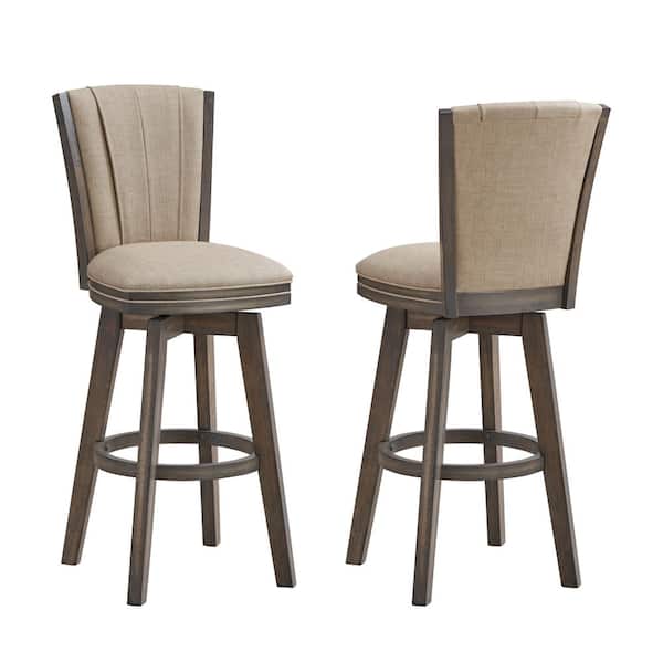 SignatureHome Seat 29.5 in. H Grey Finish High Back Wood Counter Stool With Polyester Fabric Seat 2 Stool Set
