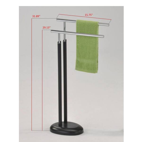Towel Rack Chrome & Gray Metalo Towels 2 Bar Holders Dimensions: 15 in. W x 7 in. L x 32 in. H