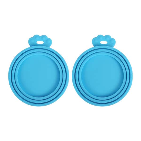 Silicone Pet Can Cover Lids Universal Fit for Dog Cat Food 100% BPA Free Dishwasher Safe Blue 2-Pack