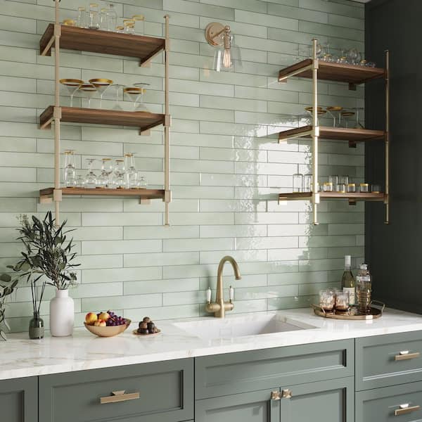 Silken Green 2.56 in. x 8 in. Glossy Ceramic Subway Wall and Floor Tile Sample (0.11 Sq. ft./case) (1-pack)