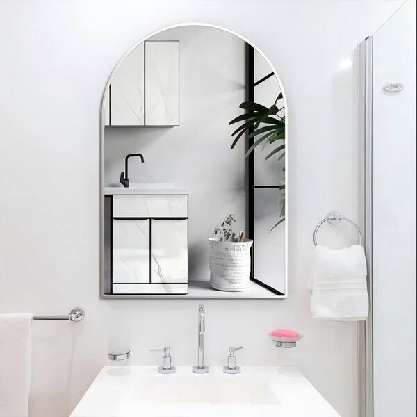 Silver 20 in. W x 30 in. H Classic Arched Metal Framed Mirror for Wall