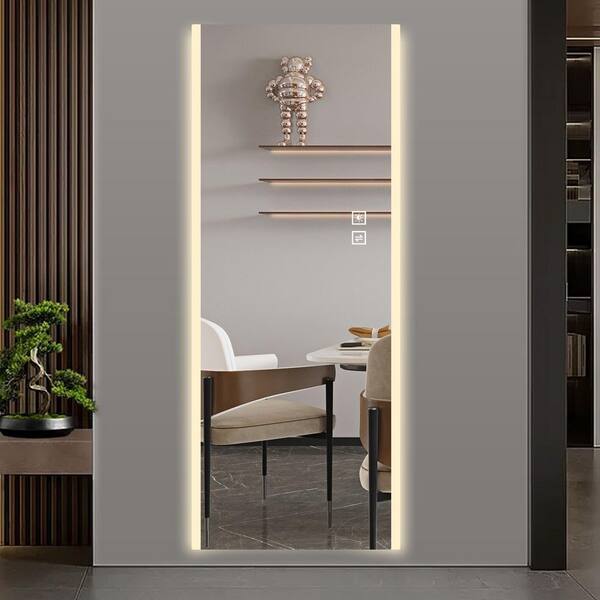 Silver 21 in. W x 65 in. H Rectangular LED Full Length Floor Mirror with Light, 3-Color Changing Light