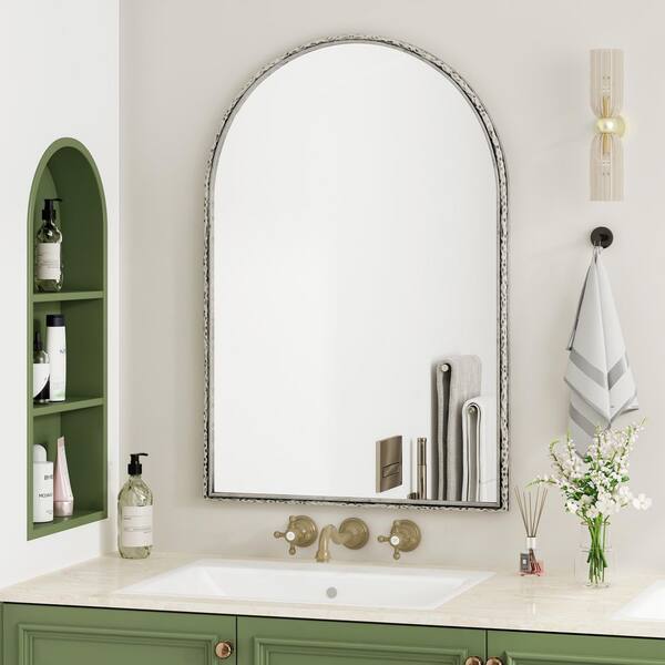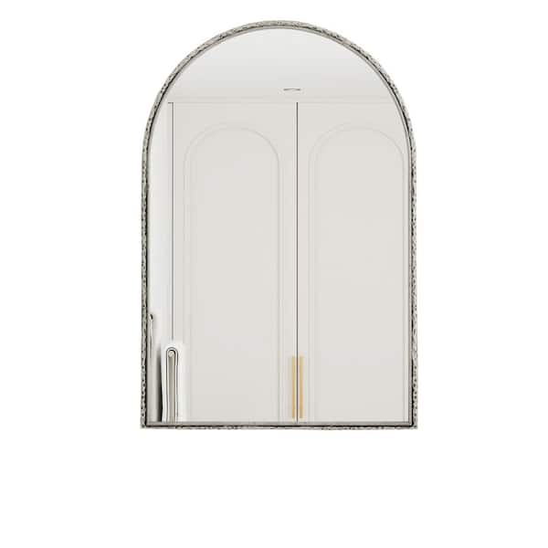 Silver 24.02 in W x 35.83 in. H Iron Framed Arched Mirror for Bathroom, Bedroom