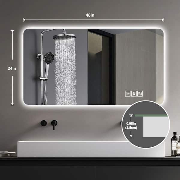 Silver 24 in. W x 48 in. H Full-Length Mirror with LED Light 3 Color Lighting Dimming Waterproof Anti Fog Touch Switch