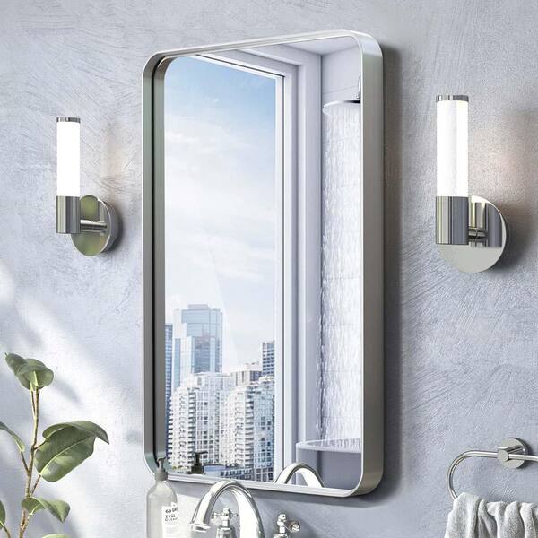 Silver 32 in W x 50 in. H Aluminum Morden Right Angle Rectangular Mirror Wall-Mounted Mirror for Living Room