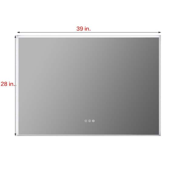 Silver 39 in. W x 28 in. H Rectangular Acrylic Framed Bathroom Vanity Mirror with Dimmable, LED Lights, Anti-Fog