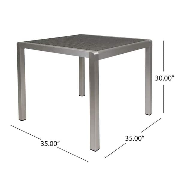 Silver Frame Square Wicker Tabletop Outdoor Dining Table