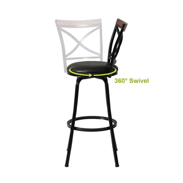 41.5 in. Black and Brown Metal Frame Standard Bar Stool with Faux Leather Upholstered Seat (Set of 2)