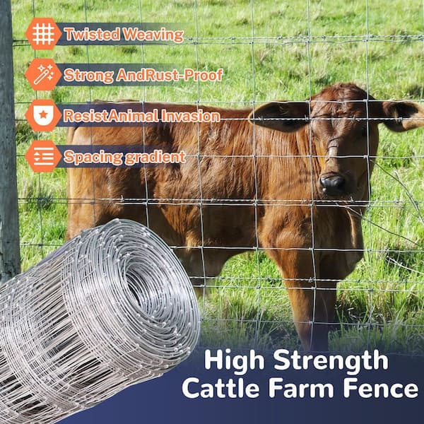 48 in. x 165 ft. 10-Gauge Reinforced Hot-Dip Galvanized Mesh for Cattle Fence Panel Pig Fence Panel, Grass Pasture Fence