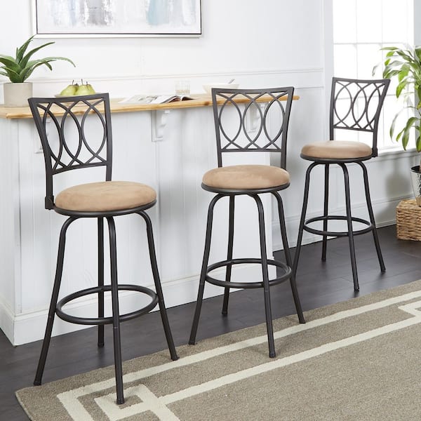 Virgil 38 in. Light Brown Cushioned Adjustable Height Swivel Bar Stools (Set of 3)