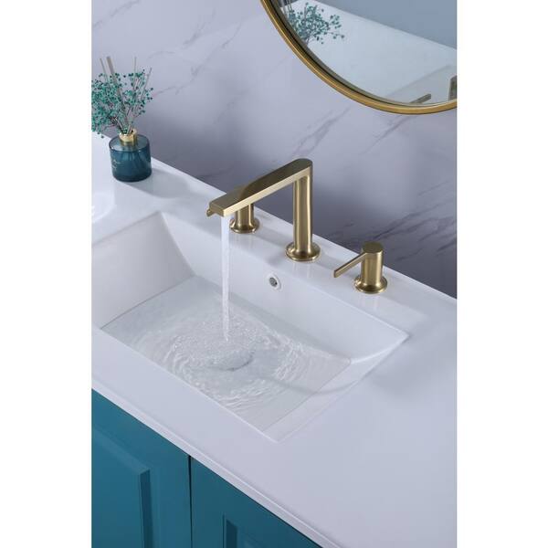 Simple 8 in. Combo Kit 3 Holes Double Handle Brass Bathroom Sink Faucet Rust and Corrosion Resistant in Brushed Gold