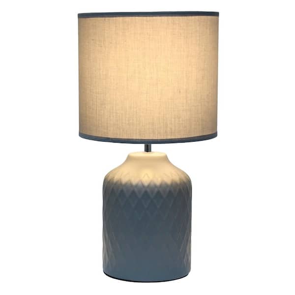 17.25 in. Touch of Chevron Ceramic Table Lamp with Matching Drum Shade for Living Room, Bedroom, Office, Gray
