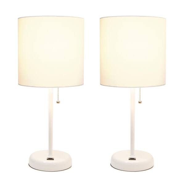 19.5 in. White Stick Lamp with USB Charging Port and Fabric Shade, White (2-Pack Set)