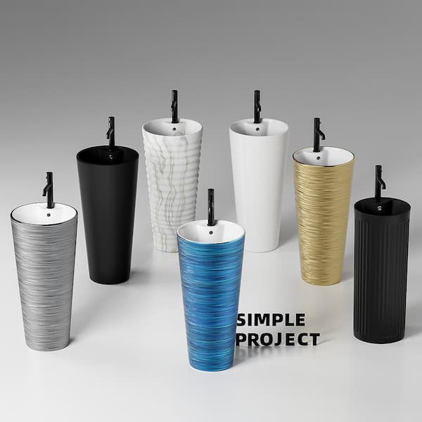 15.8 in. W x 33 in. H Tall Circular Basin Pedestal Sink in Black with Single Faucet Hole and Overflow