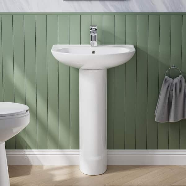 17 in. D x 20 in. W x 32 in. H Compact White Bathroom Pedestal Sink with Overflow and Pre-Drilled Single Hole