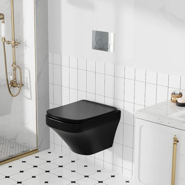2-Piece 0.8/1.6 GPF Dual Flush Wall Hung Square Toilet Bundle in Matte Black