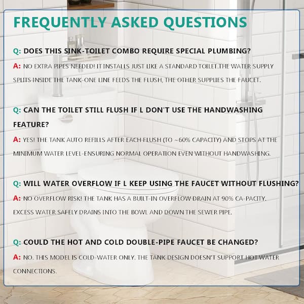 2-Piece Water Saving Elongated Sink Toilet 1.28 GPF Single Flush Toilet with Faucet, Suitable for Small Spaces, White