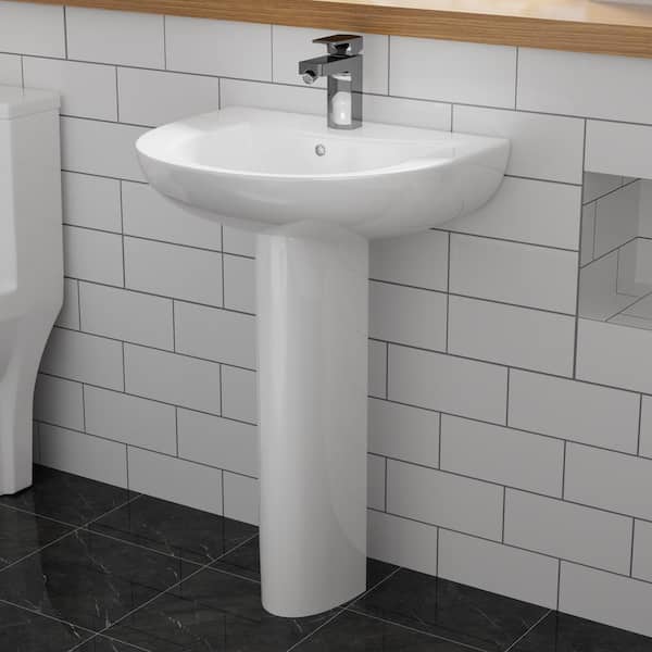 20.3 in. W x 16.7 in. D x 31 in. H White Vitreous China Pedestal Combo Bathroom Sink in U-Shape Design