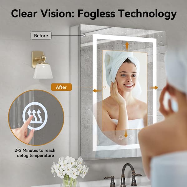 20 in. W x 28 in. H Rectangular Aluminum Light Medicine Cabinet with Mirror, Defogging, Mounted Recessed or Surface