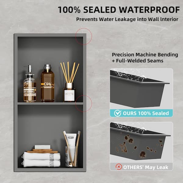 36 in. W x 12 in. H x 4 in. D Stainless Steel Shower Niche Single Layer Recessed Shower Shelf Gold
