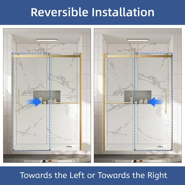 56-60 in. W x 75 in. H Brushed Gold Frameless Sliding Shower Door with Magnetic Door to Reduce Noise When Closing