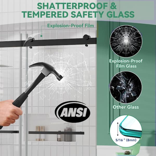 56-60 in. W x 75 in. H Semi-Frameless Bathroom Glass Shower Sliding Door, 5/16 in Clear Tempered Glass Door Matte Black