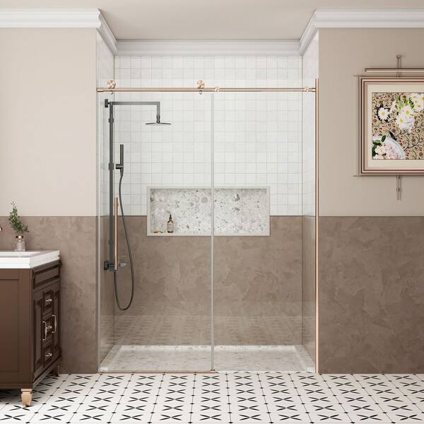 56-60 in. x 75 in. Frameless Sliding Shower Door with ANSI Certified Tempered Explosion-Proof Glass Brushed Bronze