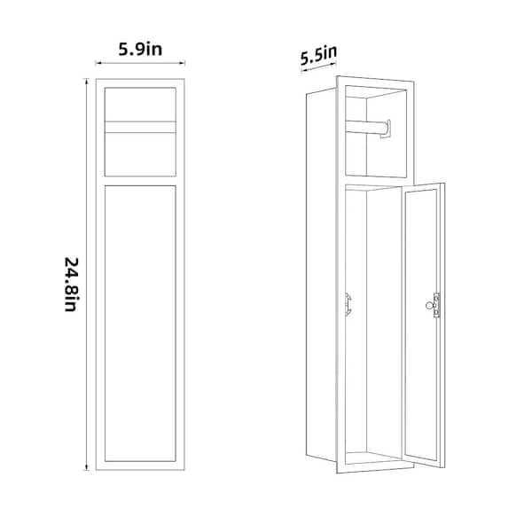 6 in. W x 25 in. H x 5.5 in. D Recessed Toilet Brush Holder with Cabinet, Shower Niche Toilet Paper Holder in Black