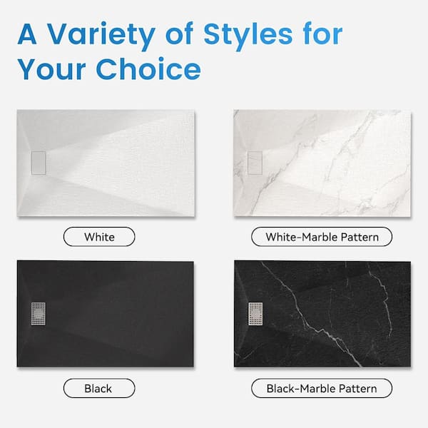 60 in. L x 36 in. W Alcove Shower Pan Base with Reversible Drain Placement Wheel Chair Access Low Profile, Carrara Black