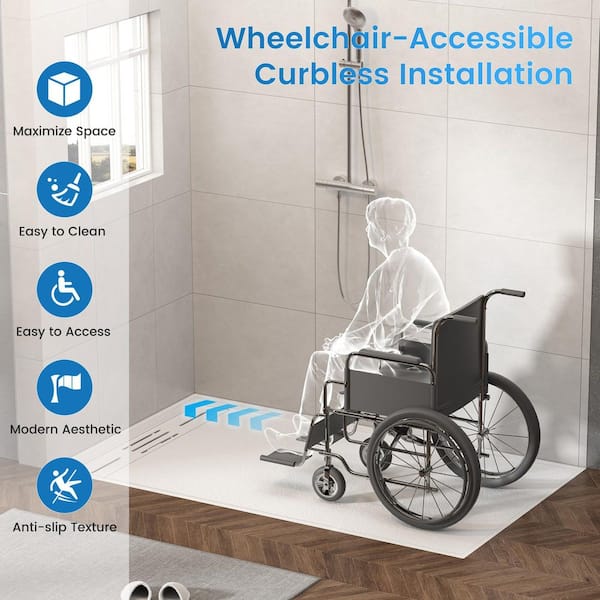 60 in.Lx32 in.Wx1. 25 in.H Alcove Shower Pan Base with Stain, less Steel Drain, Low Profile, Wheelchair Accessible White