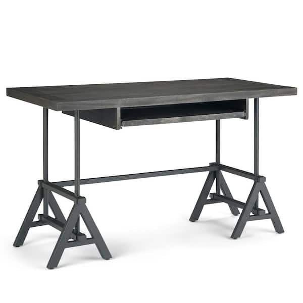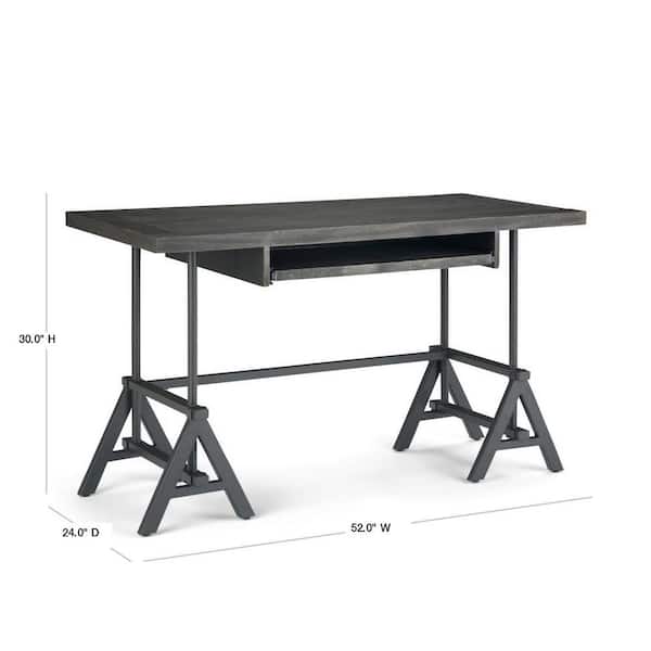 52 in. Rectangular Distressed Dark Brown Writing Desk with Storage