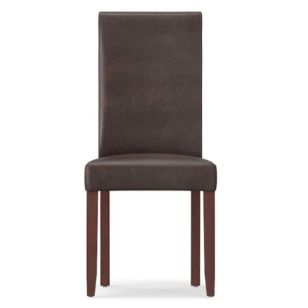 Acadian Transitional Parson Dining Chair in Distressed Brown Faux Leather (Set of 2)