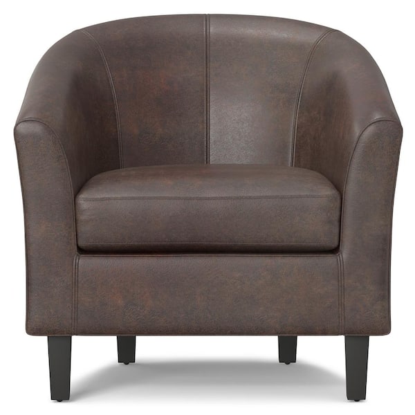 Austin 30 in. Wide Contemporary Tub Chair in Distressed Brown Vegan Faux Leather