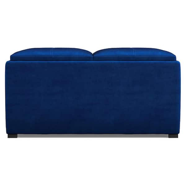 Avalon 35 in. Wide Contemporary Square Coffee Table Storage Ottoman in Blue Velvet Fabric, Assembled