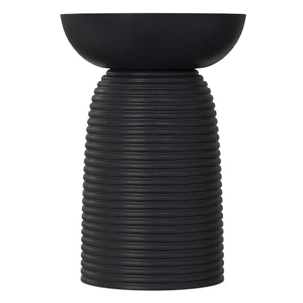 Boyd 13 in. Round Solid Mango Wood Ribbed Accent Table in Black