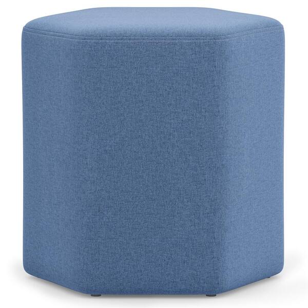 Brock 16 inch Wide Contemporary Irregular Footstool in Wedgewood Blue Linen Look Fabric, Fully Assembled