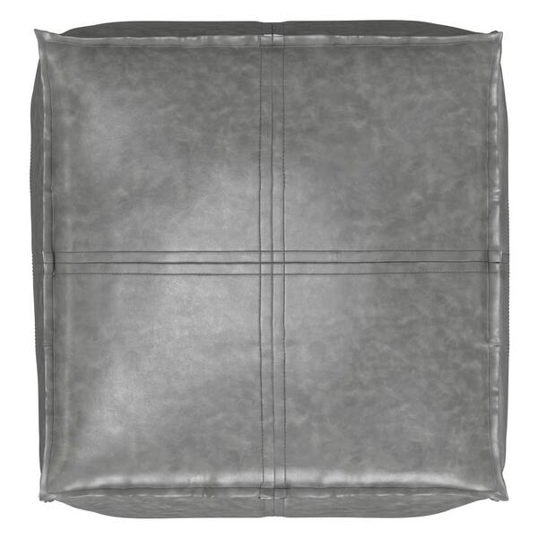 Brody Boho Square Pouf in Distressed Grey Vegan Faux Leather