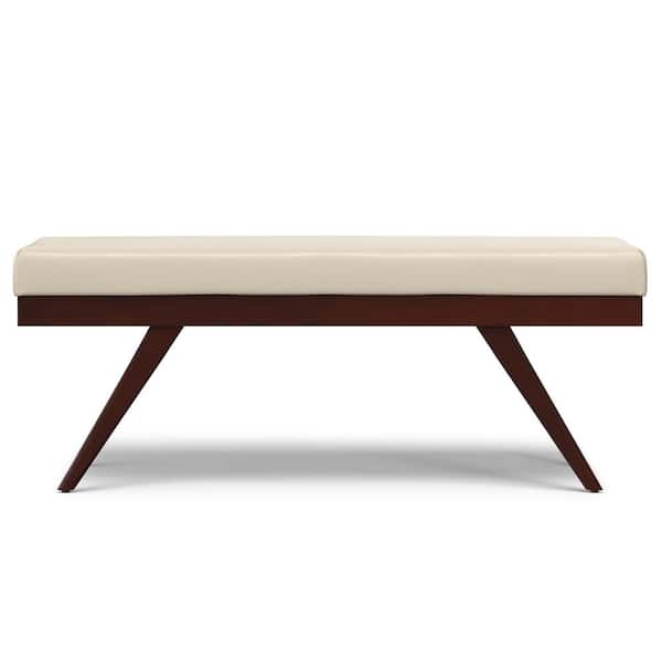 Chanelle 48 in. Wide Mid Century Modern Rectangle Ottoman Bench in Satin Cream Vegan Faux Leather, Assembled