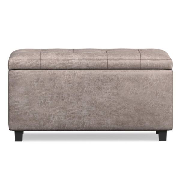 Cosmopolitan 34 in. Wide Transitional Rectangle Storage Ottoman in Distressed Grey Taupe Vegan Faux Leather, Assembled