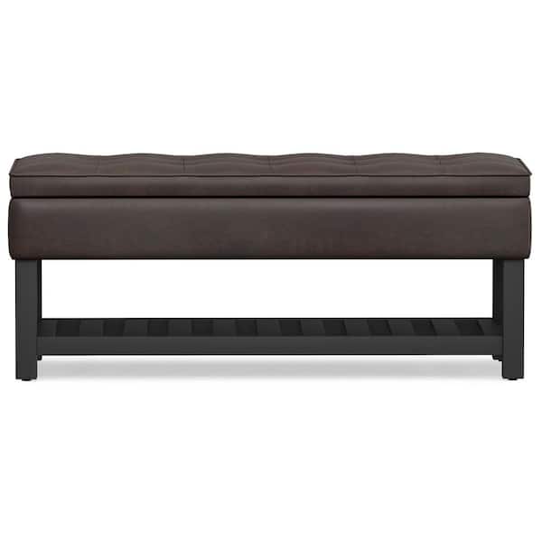 Cosmopolitan 44 in. Wide Transitional Rectangle Storage Ottoman Bench with Open Bottom in Distressed Brown Faux Leather
